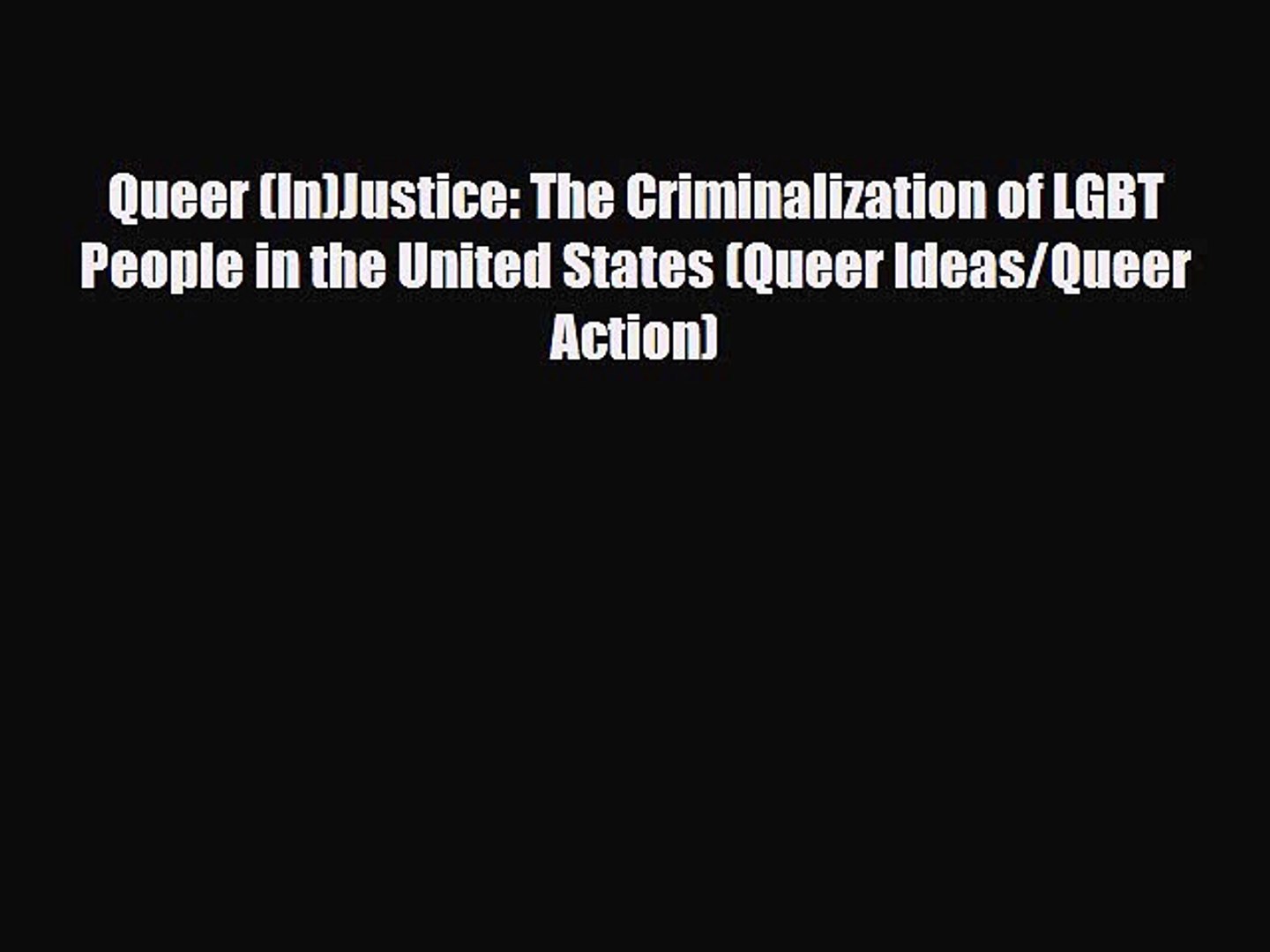 Queer In Justice The Criminalization Of Lgbt People In The